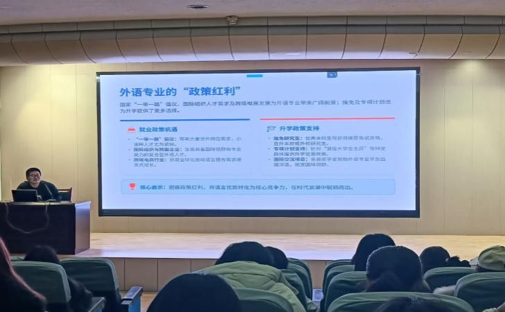 会上,刘冰结合自身经历、当前就业市场竞争形势与考研发展现状,深刻阐释了学历提升与科学职业规划对大学生未来发展的重要意义。他以真实的考研成功案例为切入点,激励同学们正视自身起点、坚定考研追梦信念,全面提振备考底气与攻坚决心。同时,刘冰还围绕跨考方向建议、专业择校分析、考研全流程梳理、历年分数线参考等核心内容展开细致讲解,为同学们找准自身定位、明晰备考方向、提升备考效率提供了专业且实用的指导。