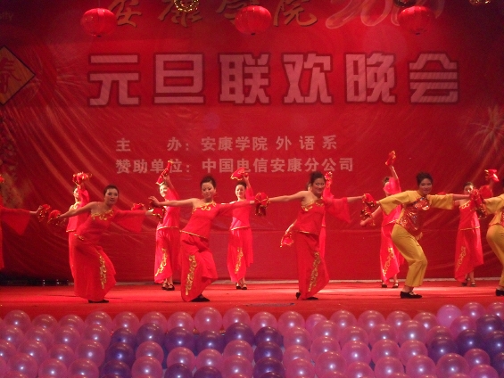 舞蹈《爷爷奶奶和我们》拉开的晚会的帷幕,开心的笑容、红色的舞裙,喜庆的音乐让观众进入了新年的意境。晚会节目精彩纷呈,动感有劲的现代舞、萦绕会场的中英文歌曲、特色浓郁的民族舞、幽默搞笑的《小品》,演员们激情洋溢的演出,一次次将晚会引向高潮。晚会在演员和全场观众的舞蹈中圆满结束,同学们用歌声和舞蹈祝福安康学院的明天、外语系的明天更加美好!