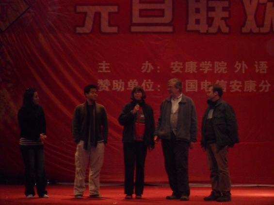 12月23日晚上7:30分,晚会在西校区大礼堂拉开帷幕。会场上外语系的同学们用热烈的掌声欢迎着每一位到场的嘉宾,出席本次晚会的领导和嘉宾有安康学院原副院长刘忠琴、学院党委副书记胡鸿晓 党委组织部部长胡波等有关职能部门、系部的领导和学工办、团总支的老师们,我院的几位外教也应邀出席了晚会。