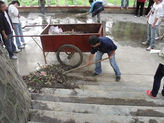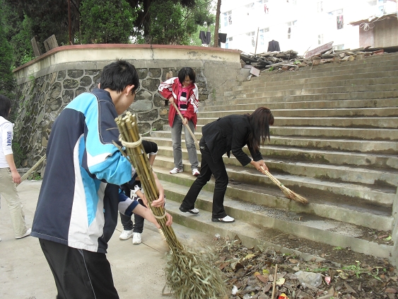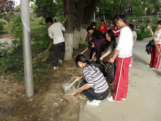 为迎接省学位办专家对我院的首次本科专业检查,响应学院要求的积极开展爱国卫生大清扫活动,4月26日下午,我系部分师生积极行动起来,对6号教学楼周围的道路,花园、草丛、报栏等进行了打扫和擦洗。