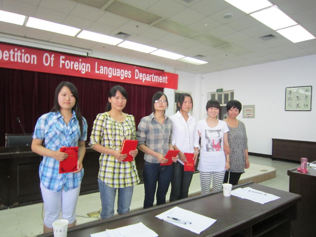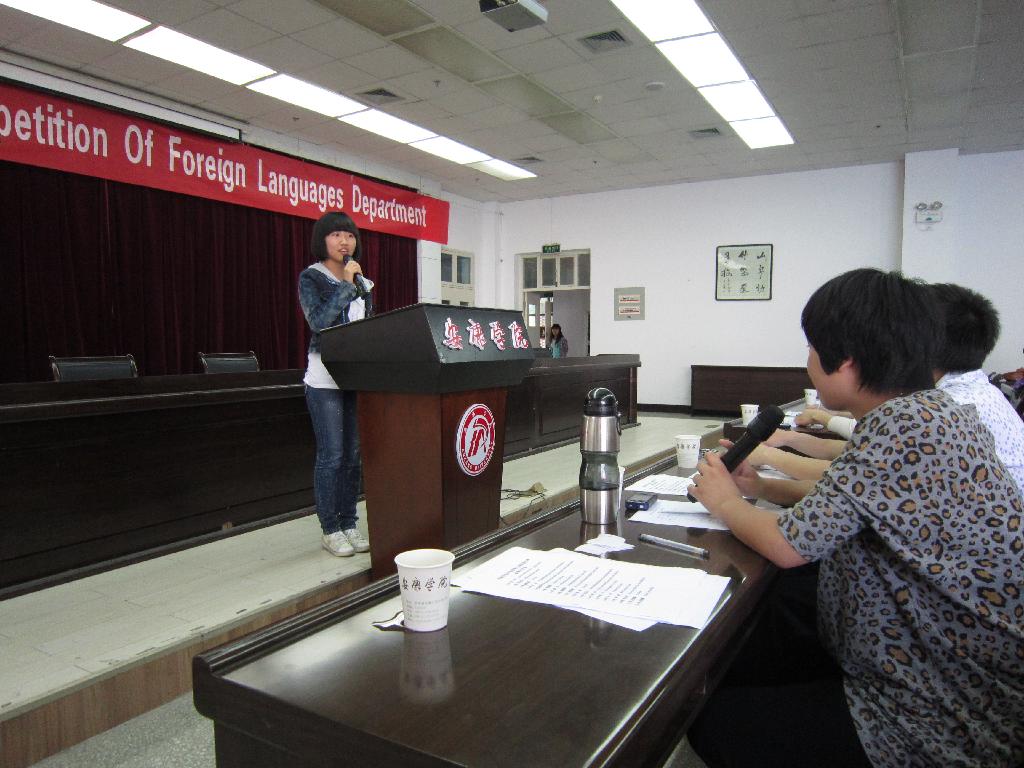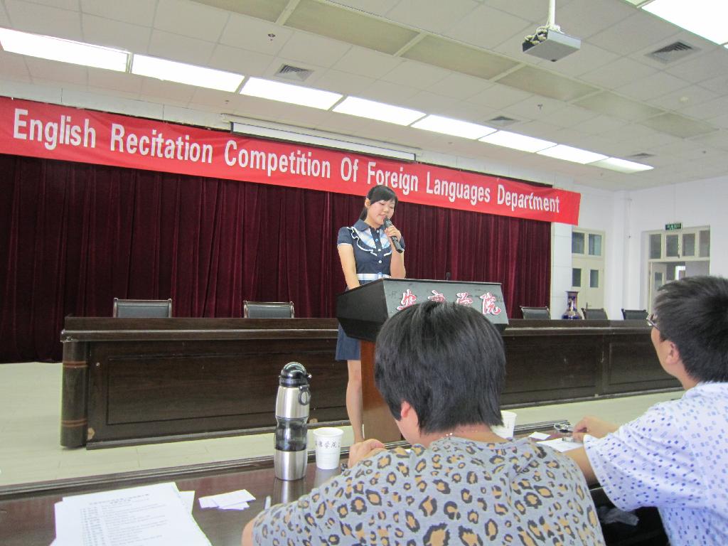 2011年5月25日下午,由外语系主办,英语教育教研室,外语系学生分会承办的第三届英语朗诵大赛在学院图书馆六楼多功能厅举行。外语系三百余名师生观看了本场比赛。经过激烈的角逐,段丽娜等9名同学分别荣获一、二、三等奖。
