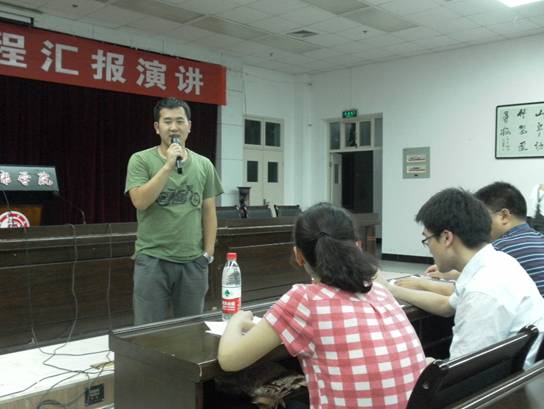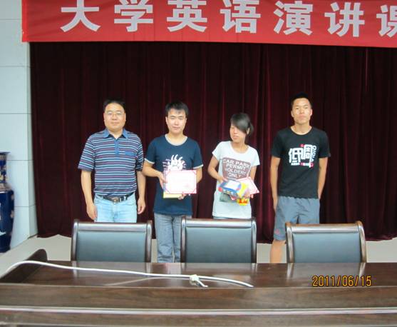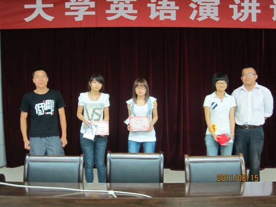 6月15日晚7点30分,“大学英语演讲课程汇报演讲比赛”在图书馆六楼报告厅顺利举行,来自《大学英语演讲艺术》选修课程班的16名选手参加了汇报比赛。电子信息工程09级的冯梦谊和汉语言文学09级的张攀航获得一等奖。