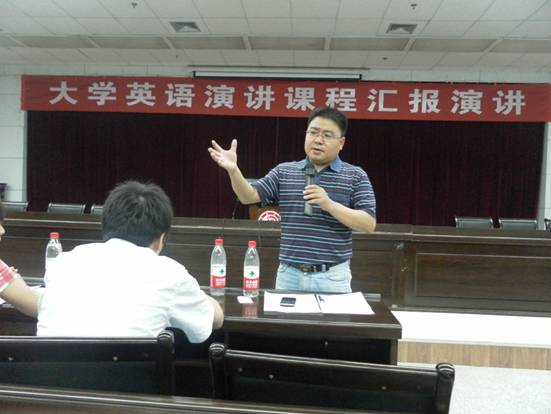 《大学英语演讲艺术》是大学英语选修课程体系中“技能拓展类课程”。本学期首班由大学英语教学部主任李继平老师开设讲授。在11个教学周的实践训练过程中,该班45名来自不同院系的同学,在演讲技能和演讲艺术等方面都有巨大进步。许多同学因此而对英语学习兴趣倍增,信心十足,发誓要将英语进行到底。