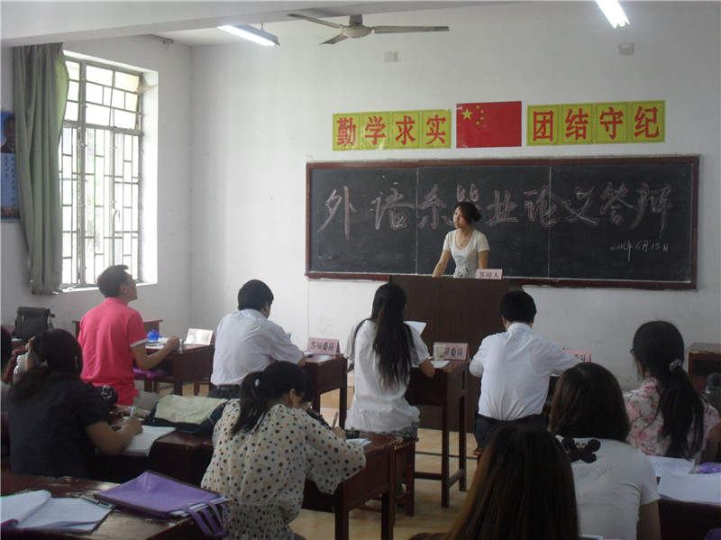 毕业论文答辩是高等教育的关键环节。外语系高度重视,精心安排,今年先后进行了开题报告会、中期论文检查和论文写作指导,把论文质量的管理贯穿于整个毕业论文写作过程,严把论文质量关。同时为保证本次毕业论文答辩工作做到公正、公平,外语系多次组织论文指导教师开会讨论,并按照论文评分标准逐个评议。答辩小组的老师在会前反复阅读并指导学生的论文,也多次与学生就论文的语言、内容等方面交换意见。