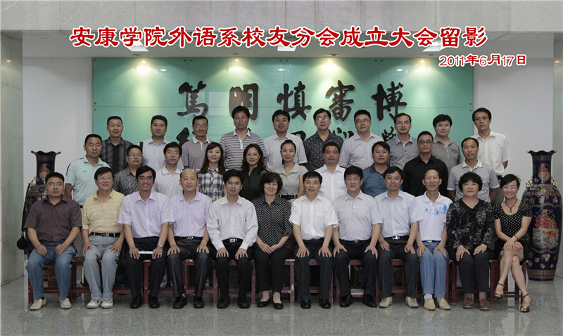 悠悠学子心,依依母校情。2011年6月17日,安康学院校友会“外语系分会”成立大会在学院东校区第一会议室隆重举行。外语系校友会代表聚首母校,喜看母校换新颜,草绿花香更宜人。安康学院党委副书记胡鸿晓,副院长陈刚,退休教师刘忠琴,就业处长丁义国,外语系党政领导以及来自安康各县区的40余名优秀校友代表出席了成立大会。大会由外语系党总支书记李岩同志主持。