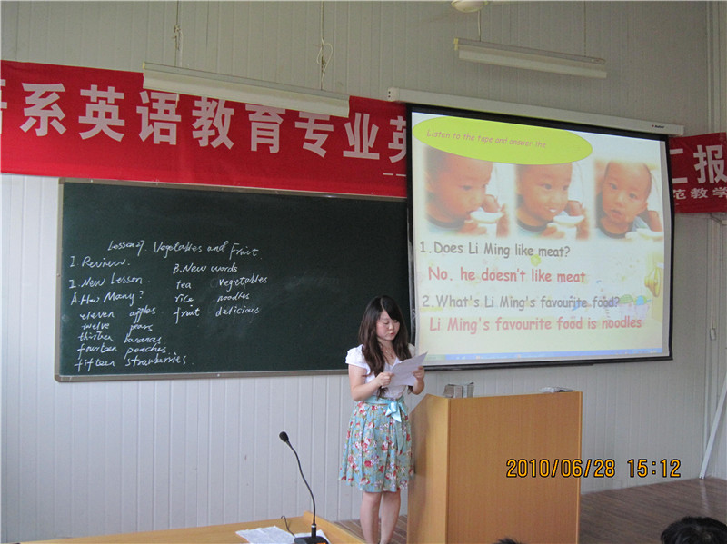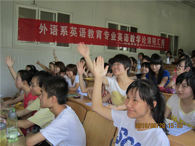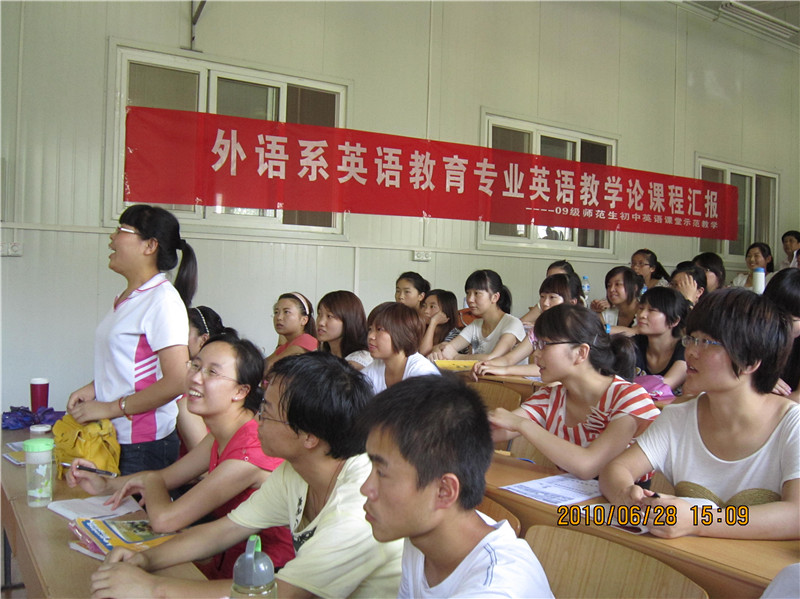 培养学生良好的教师职业技能是师范教育的重要内容。为切实提高师范生的教学技能,提高教育教学实践能力,英语教育专业学生经过英语教学论课程系统的训练后,举办师范生初中英语课堂示范教学活动,为后期教育实习、顶岗实习做好前期准备工作。同时,在引导10级师范生积极关注课堂教学实践起到了积极作用。本次活动收到了预期效果。