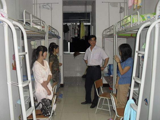 9月4日晚,在外语系党总支书记李岩的带领下,外语系学生工人员走访新生寝室,看望了2011届新生,询问大一同学寝室生活习惯并嘱咐生活学习中遇到困难可以随时联系外语系学生工作人员。
