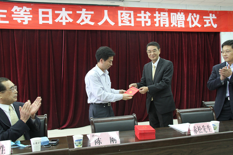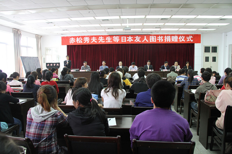 本次捐赠仪式由图书馆馆长何道利同志主持,何馆长首先隆重介绍了出席捐赠仪式的中日双方嘉宾,对他们的到来表示热烈的欢迎。仪式中陈院长首先就我院专业设置尤其是日语专业本科教育向各位嘉宾做了介绍,并且对赤松先生在365完美日语教育工作中做出的贡献给予高度评价;特别对出席此次捐赠仪式的日本友人及其他10位捐书友人表示由衷地感谢。陈院长表示,赤松先生的捐书善举为,不仅反映了他本人对中国教育事业的热爱,而且也印证了中日两国人民的深厚友谊。