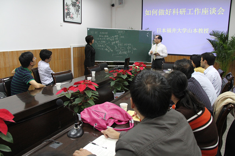 在学院第一会议室,来自日本福井大学教授山本富士夫先生为我院30位青年科研骨干做了“如何成为一名优秀科研人员”的讲座。山本教授是福井大学退休教授,是日本两个科研机构的负责人,曾为日本国内和其他国家培养出大批优秀科研人才,陈刚副院长也曾是他的科研工作伙伴。山本教授指出,搞好科研,要先明确研究目的,做好调查,理论与实验基础准备,同时要注重对研究成果的评价。他强调,做科研要博学,善用团队和合作伙伴的力量。善本教授用自己亲身科研经历为青年教师树立了典范,开拓了他们的视野,启发了他们科研思路。