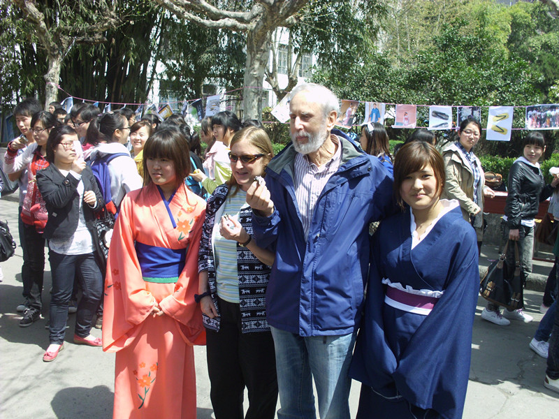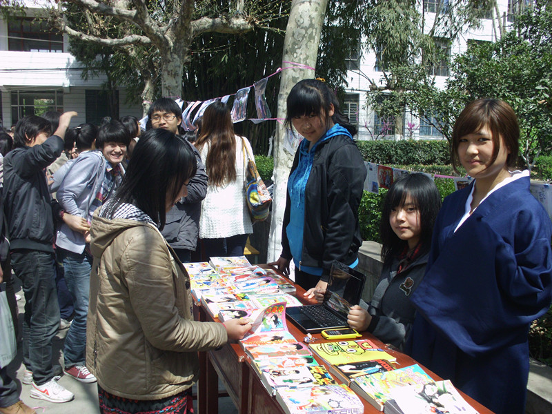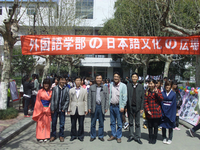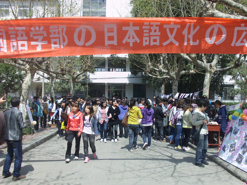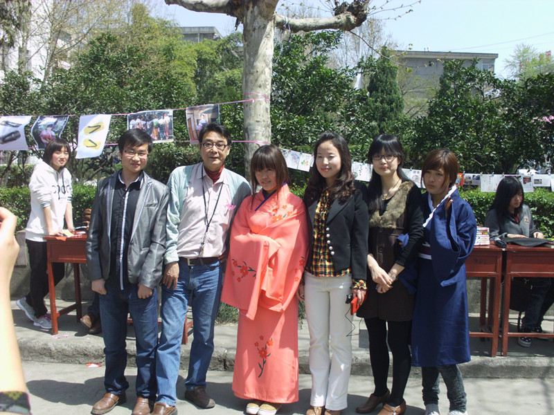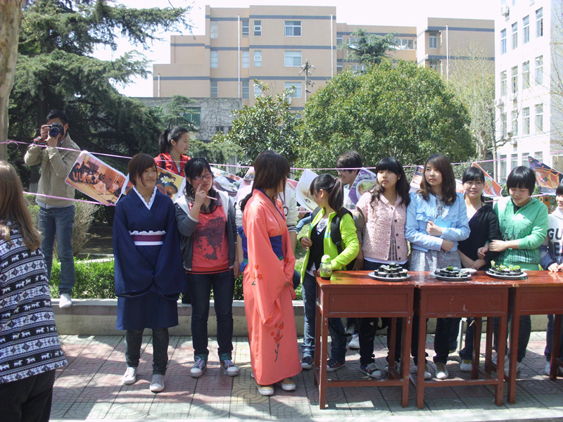 3月31日中午12点,伴随着一阵愉快下课铃声,外语系第三届“日语文化广场”在学院第一食堂前的林荫道上拉开了帷幕。外语系系主任哈红光、书记李延福、副主任张哲华以及外教艾伦·佩里夫妇、赤松秀夫等出席了活动现场并参观了活动的内容。有关日本“衣、食、住、自然风光”四个主题的图片展览;精美的日本寿司料理品尝;激情澎湃的日语歌曲演唱;扣人心弦的有奖竞猜活动;令人流连忘返的日本漫画书籍展览等各个环节依次推出,吸引了众多师生前来参观,也让众多的日本文化迷们大呼过瘾。一条短短的林荫道顿时成了一片欢歌笑语的地方。