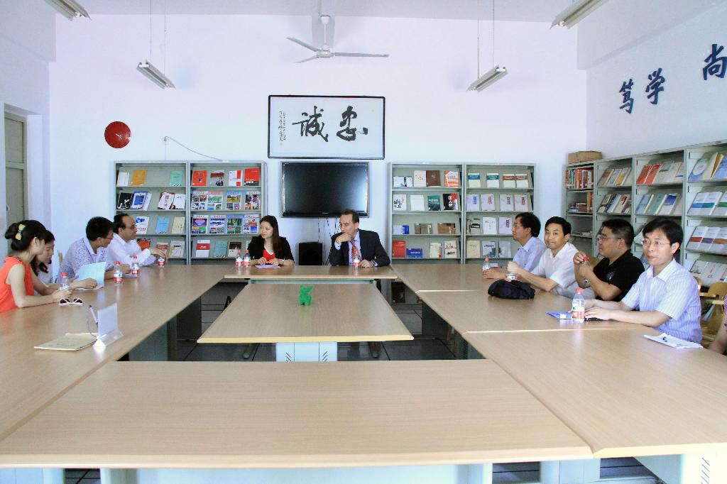 随后,LCCI亚洲区总裁 Mark Disney与安康学院陈刚副校长签署合作办学协议并为合作办学揭牌。签字仪式结束后,Mark Disney先生、颜洁女士和温来纲先生跟外语系师生还进行了座谈。