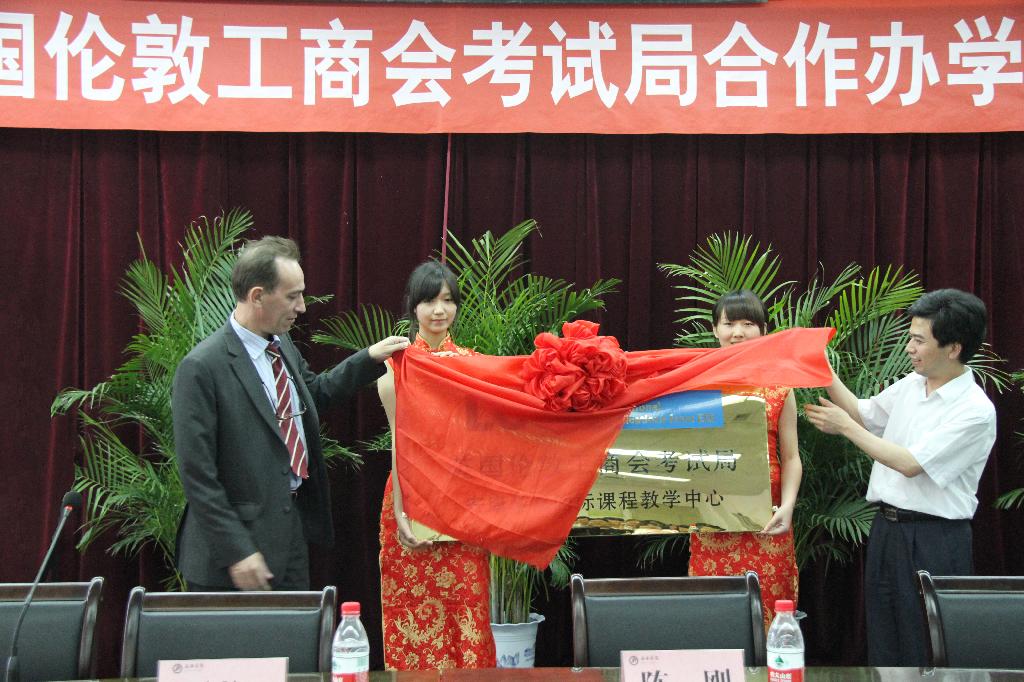 LCCI亚洲区总裁 Mark Disney先生发表了幽默风趣的讲话。他首先向促成此次合作办学的所有人员表示感谢,然后简单地介绍了LCCI,该机构在全世界86个国家设有5000多个考试中心,每年有800,000多人参加考试,是世界最大的及最受承认的国际职业资格鉴定组织,特别是在英联邦国家和东南亚国家一直享有“求职通行证”的美誉。