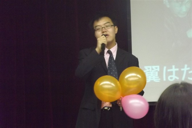 在选手演唱结束后,梁维老师和海道千春老师分别演唱精彩歌曲助兴,赢得了同学们的热烈掌声。最后,外教赤松秀夫先生发表了演讲,赤松老师表达了对新生到来的欢迎。他表示,虽然现在中日关系发展正值困难时期,但他相信中日两国人民之间的友谊长存,相信暴风雨会有过去的一天。