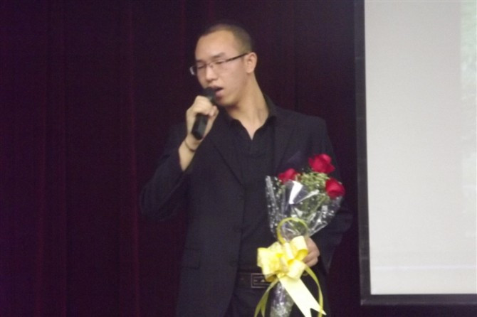 本次大赛日语专业2010级的蔡雨森同学赢得了冠军。外语系领导为获奖同学颁奖表示祝贺,全体师生合影留念,晚会在热烈而欢快的气氛中落下了帷幕。