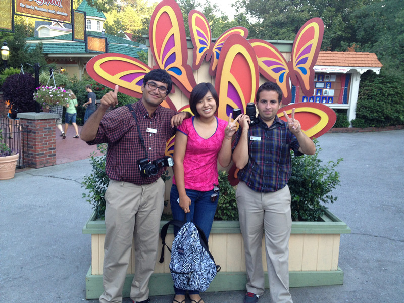 我的工作是地点在田纳西州的Pigeon Forge小镇一个名叫Dollywood的主题乐园里,我的主要工作是摄影师,负责给游客在固定景点照相有时也会在商店买照片,工作很简单但是很辛苦。大夏天的要在40多度的室外工作,还要不停的询问游客是否要照相,现在想想真不知道自己当时是怎么坚持下来的,不过一分耕耘一分收获,我们的薪资也自然会比别人高一些。工作虽然辛苦但是在这份工作中真心是能够体会到美国人在管理上的优越性,在时间上的严格以及不失人性化的管理,更能体会到他们的友好。当然了在工作过程中也有过不太愉快的事情发生,但是最终都通过我们的努力得以解决。无论结局是好是坏,这都是一种锻炼与成长。除此工作外我还在一家日本料理店做兼职。这个项目就旨在:给你一个舞台自己去创造机会,所以我也想尽可能的多赚些钱以供日后旅行的经费。在这家饭店里我学到了许多:比如就餐礼仪,如何与外国人打交道,口语也得到了提高,可以说是收获颇多。