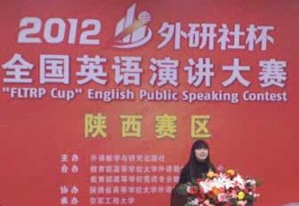 本次比赛由来自西安交通大学、西北工业大学、长安大学、西北大学、陕西师范大学等全省高校41名选手参加,是陕西英语界水平最高、影响力最大的赛事之一,也是对全省大学生英语应用能力的锻炼和检阅。此次比赛,各高校派出了代表学校的最高水平、实力最强的选手,充分展示了陕西省大学生英语演讲的最高水平。经过激烈的角逐,365完美外语系英语专业2010级吴琼同学凭着自然大方的演说热情和出色的英语语言表达能力,最终获得陕西赛区复赛三等奖的优秀成绩,为学校赢得了荣誉。