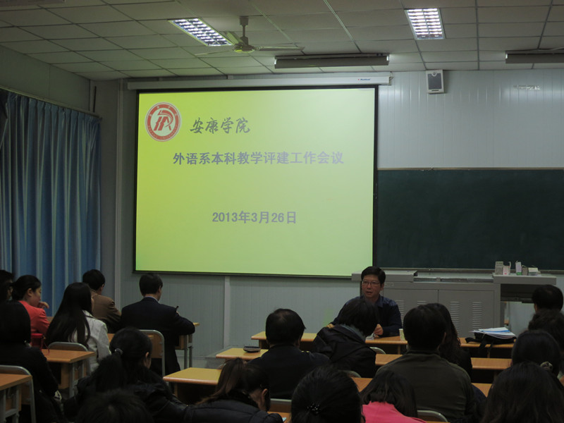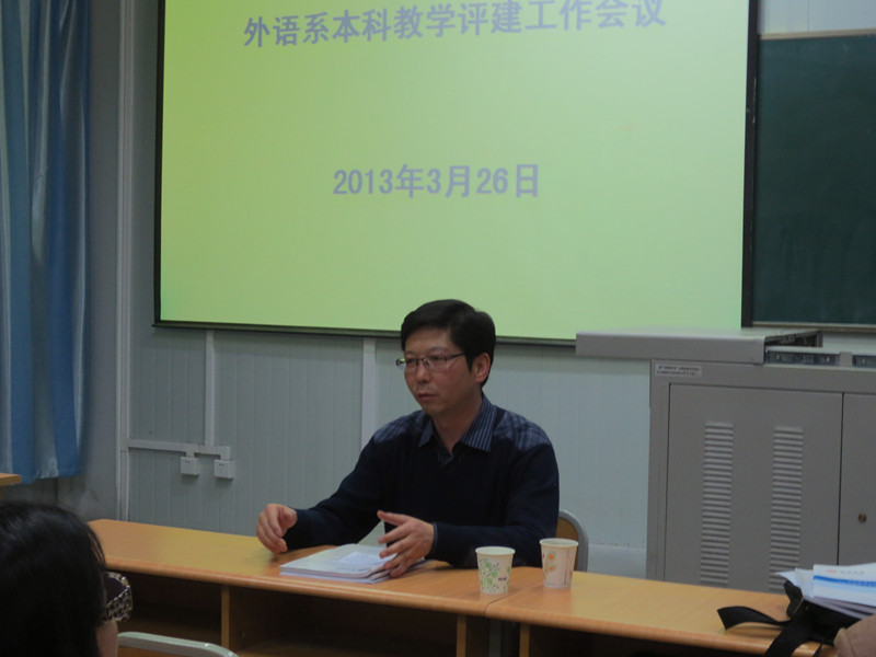 为进一步规范本科教学管理,提高本科教学质量,3月26日晚上7点30分,我系在东校区1025教室召开了2013年本科教学评建工作会议。应外语系邀请,学校评建办金华锋主任出席本次会议,并就2013年评建工作做了专题报告。外语系全体教职工参加了会议,会议由外语系哈红光主任主持。