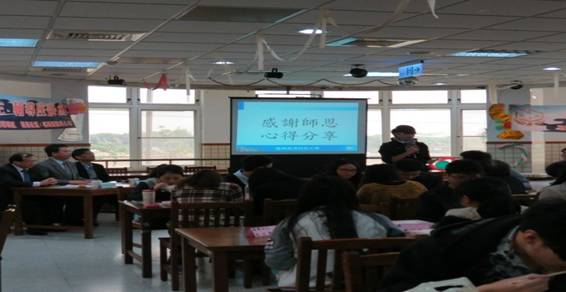 台湾大学的一大特点就是社团活动丰富,院系比赛形式多样。学校大礼堂每周都会举办晚会和开展活动。这里的社团种类丰富,形式灵活,社团活动开展的多姿多彩。令我印象最深刻的就是我们参加应用外语系举办的“英语嘉年华”故事表演比赛,要求全系分为若干小组,每组有8—10名同学,表演英语故事。这不仅考验同学们的英语能力和表演能力,而且要体现同学们的活动组织能力和团队合作能力。记得我们和台湾同学一起编写英语剧本,共同编排故事情节,在愉悦的欢笑和感动的泪水中,最后拿到了很好的成绩。我本人也获得了奖项。通过这次活动,让我们感受到团队合作的重要性,提高了组织和策划活动的能力和英语应用能力。