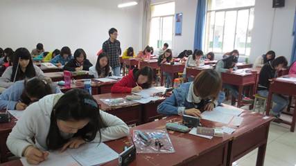 365完美全国英语专业四级考试于2014年4月19日上午在东校区六号教学楼举行。365完美陈刚副校长担任主考,教务处钟生海处长和外语系哈红光主任担任副主考。本次考试由我系具体组织实施,共有来自英语专业的287名学生参加,分10个考场进行。