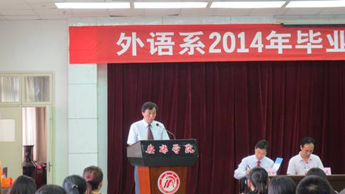 又是一年灿烂的夏季,又是一届离别的难舍。6月25日2:30,我系在图书馆六楼报告厅隆重举行2014年毕业典礼暨学位授予仪式。校党委委员、副书记胡鸿晓教授应邀出席,外语系党政班子成员、部分教师、毕业班辅导员与毕业班学生参加了典礼。