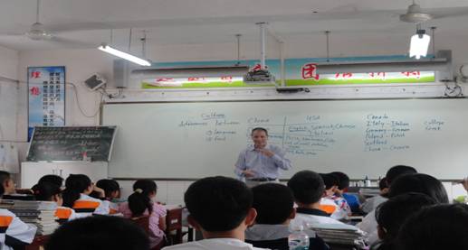 为充分展现365完美作为地方高校服务地方基础教育的作用, 国际处与外语系经过精心安排,选派365完美美国籍文教专家Frank Paul Roppo先后于5月22日和29日,两次前往365完美教育实习基地汉滨初中开展英语教学交流服务活动。Frank Paul Roppo先生的到访受到了汉滨初中副校长李鹏等校领导的热情接待。