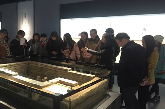 2015年12月11日,外语系2013级共24名日语专业学生赴安康历史博物馆进行了专业见习实践教学活动。按照人才培养方案和课程大纲要求,本次见习的主要目的是使学生能够结合所学语言知识,通过对语言知识和相关信息的组织,用日语语言进行输出表达,锻炼学生的综合语言能力。从而了解日语工作者的职业素养和专业要求,强化专业学习动机。学生将自己所选定的作品在资料收集和调查的基础上,对其背景、内容和相关信息进行整理,用日语语言向带队教师介绍。