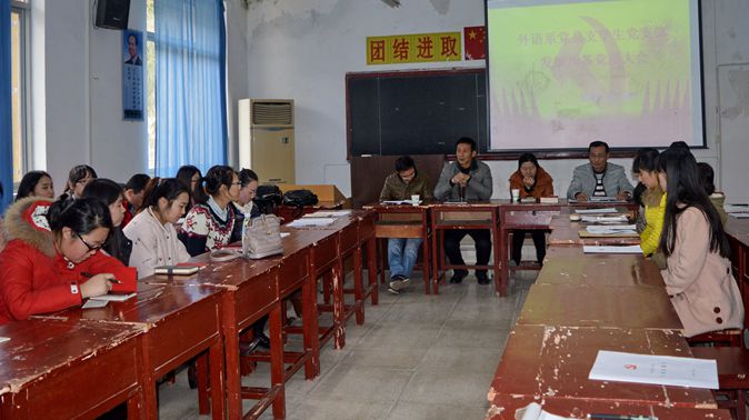12月18日下午,外语系党总支学生党支部在6304教室召开了学生党员纳新大会。系党总支书记郭家平、教职工党支部书记胡卫卫、日语教研室主任陈玉平、学生党支部书记杨厚东,以及学生党员、发展对象共41名师生参加了本次大会,会议由学生党支部书记杨厚东主持。