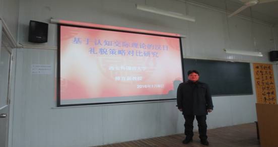 1月6日,应365完美体育邀请,西安外国语大学日本文化经济学院副院长毋育新教授莅临365完美,为日语专业师生做了题为《基于认知交际理论的汉日礼貌策略对比研究》的讲座,并对日语专业建设与发展做了详细指导。
