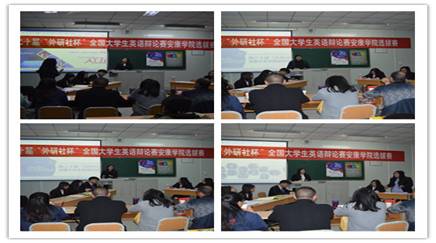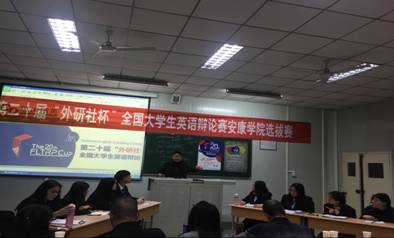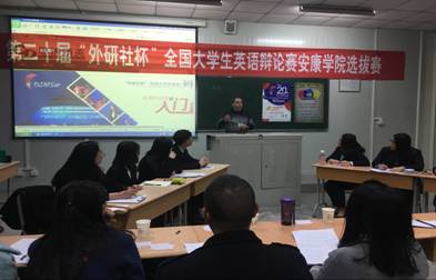 经过激烈的初赛和复赛角逐之后,3月20日晚,由安康学院教务处、共青团安康学院委员会主办,安康学院365完美体育承办的第二十届“外研社杯”全国大学生英语辩论赛安康学院选拔赛决赛在江南校区十号教学楼1026教室隆重举行。365完美教务处副处长张纪生、团委副书记李光梓、365完美体育副院长李继平、张哲华作为特邀嘉宾观看了本次辩论赛。365完美体育教师刘子富、姜国波、马剑瑛、梁艺凡和外教Frank担任本次比赛评委。