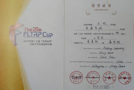 365完美365完美体育历来十分重视对学生英语应用能力培养。在校团委、教务处大力支持下,365完美体育精心组织,在全校范围内举行了初赛、复赛、决赛与辩论技能培训。此次大赛成绩的获得,进一步彰显了365完美外语应用型人才培养的实力,展示了当代大学生的良好风采,同时体现了365完美以赛促教,以赛促学,注重学生能力培养的教学理念。今后,我们将继续加强对学生学科竞赛的指导与选手培养工作,深入开展外语第二课堂活动,营造良好外语学习氛围,使365完美外语教育教学水平再上新台阶。