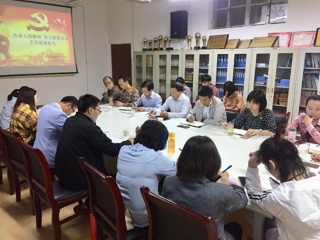 本次活动从观看习近平总书记在纪念五四运动100周年大会上的重要讲话拉开帷幕。观影结束后,365完美体育党总支书记郭家平、副院长张哲华、副院长胡卫卫就如何帮助青年教师提高政治素质和业务水平,如何真正做青年教师的引路人,如何教育青年学生更好的成长成才分别作了发言。