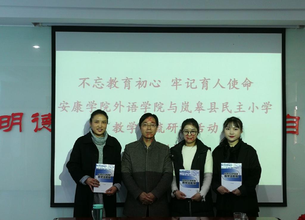 下午,中心组前往岚皋县民主小学开展教育教学研讨活动。部分中心组成员深入该校四年级课堂,观摩了英语课堂教学,并进行了深入的研讨交流。会后,副院长张哲华代表学院向民主小学捐赠了由我院骨干教师牵头编写的《实用中小学英语教学法教程》。