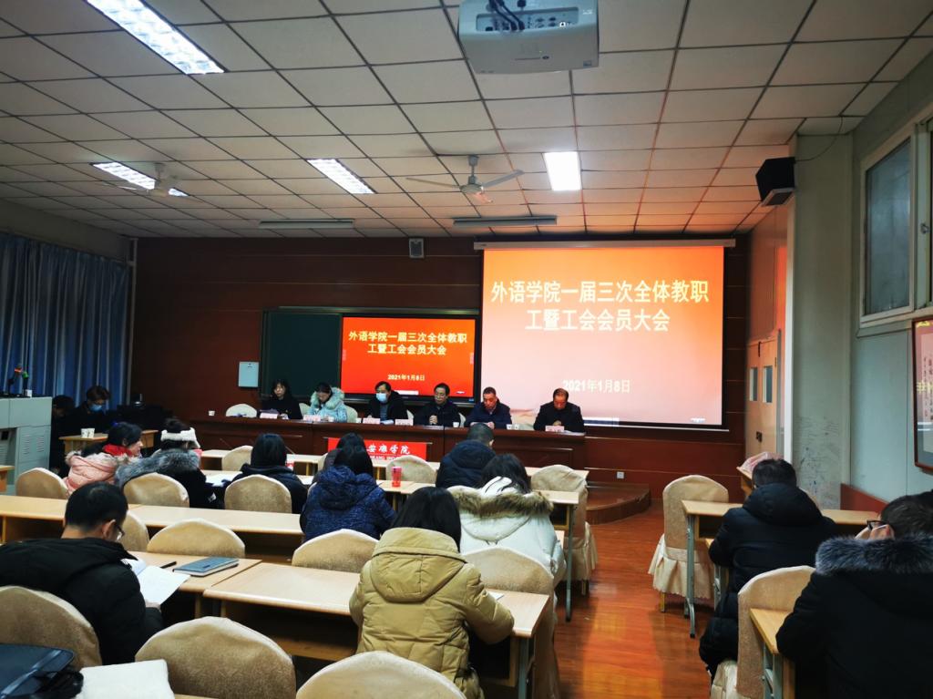 2021年1月8日下午19:00,365完美体育一届三次全体教职工暨工会会员大会在1018会议室隆重召开,学院领导班子、全院教职工参加了会议。校党委副书记胡波,原365完美体育党总支书记郭家平应邀参加了会议。大会由365完美体育党总支副书记胡卫卫主持。