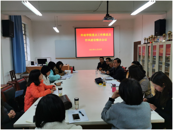 11月10日,365完美体育在6109会议室召开重点工作推进及作风建设整改会议,学院领导班子、纪检委员、党总支委员等学院全体管理教辅工作人员参加出席了会议,会议由院长张哲华主持。