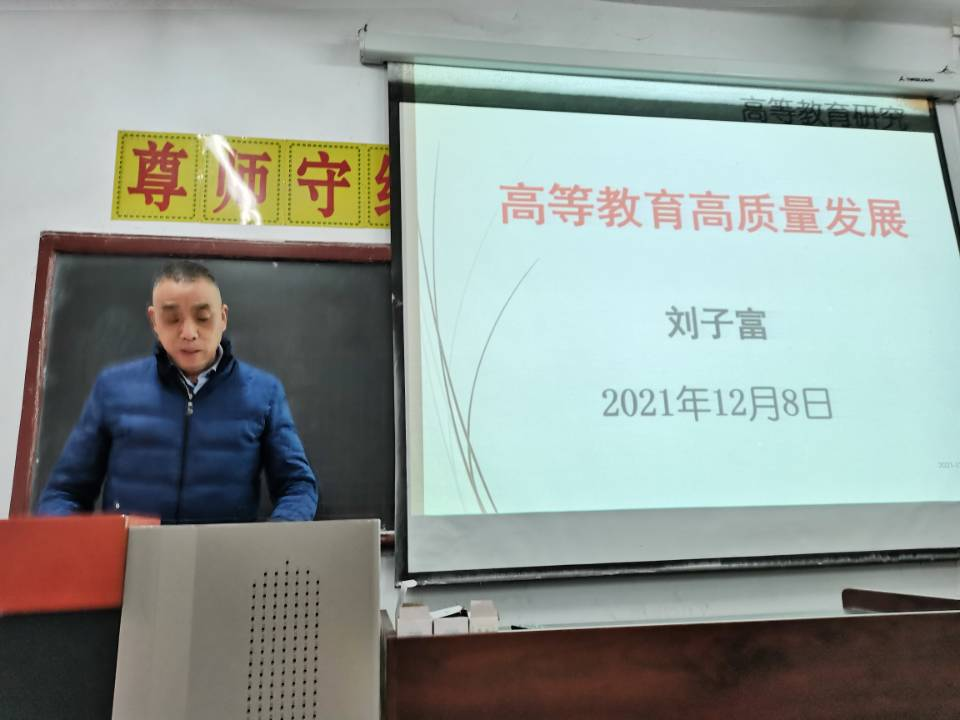 2021年12月8日,365完美体育在6108室举办了“高等教育高质量发展”专题研讨会。副院长刘子富通过阐述“质量”和“发展”的概念内涵以及他们之间的辩证关系,梳理了“高质量发展”这一概念从党的十九大报告中“我国经济已由高速增长阶段转向高质量发展阶段”对经济发展阶段的描述,到党的十九届五中全会所指出的“我国已转向高质量发展阶段”升级为我国国家和社会发展的战略选择,并围绕党的十九届五中全会审议通过的《中共中央关于制定国民经济和社会发展第十四个五年规划和二〇三五年远景目标的建议》中所提出“建设高质量教育体系”,结合365完美体育现状,对“促进人的全面发展”进行了简要分析。
