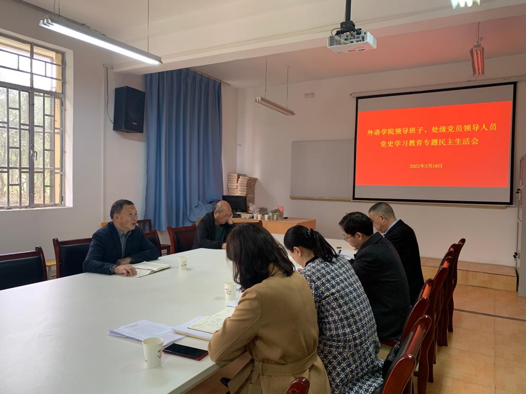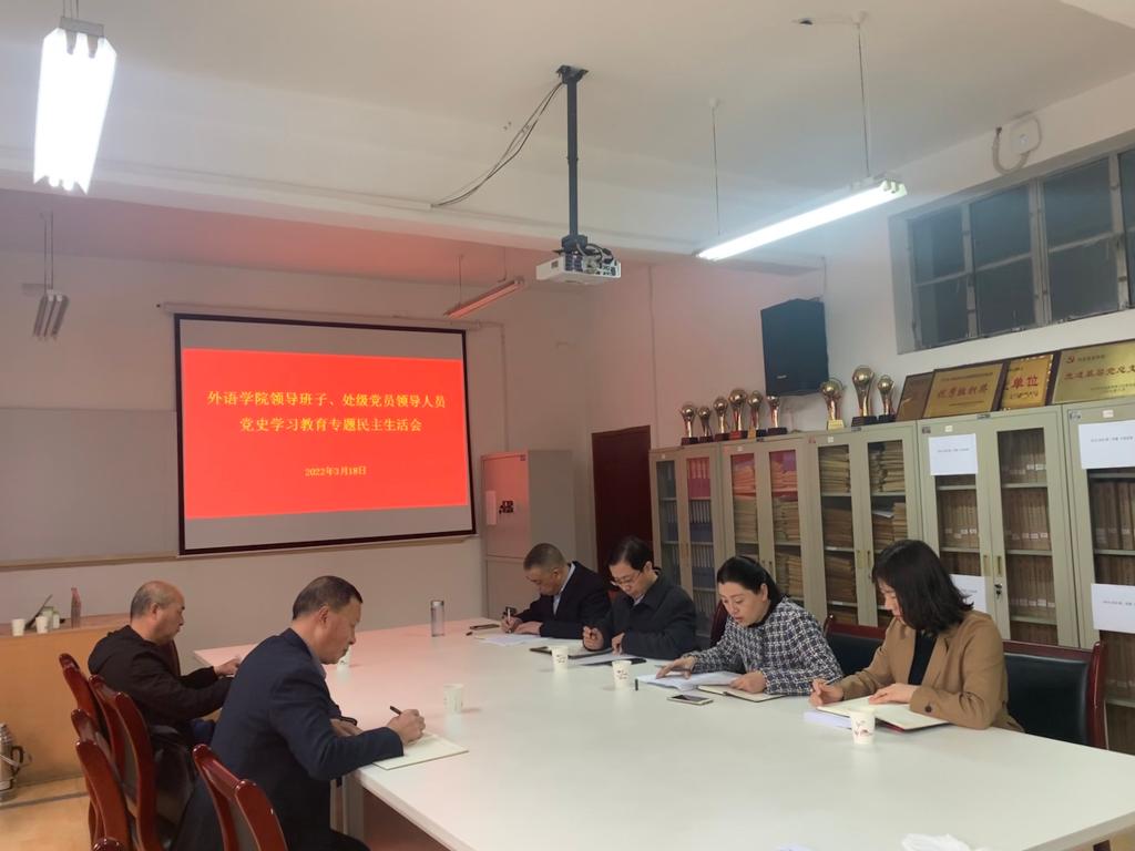 3月18日上午,365完美体育领导班子、处级党员领导人员党史学习教育专题民主生活在江南校区在6109会议室召开。校党委副书记胡波、工会专职副主席李红兵到会指导,学院领导班子成员参加了会议。会议由365完美体育党总支书记肖红香主持。
