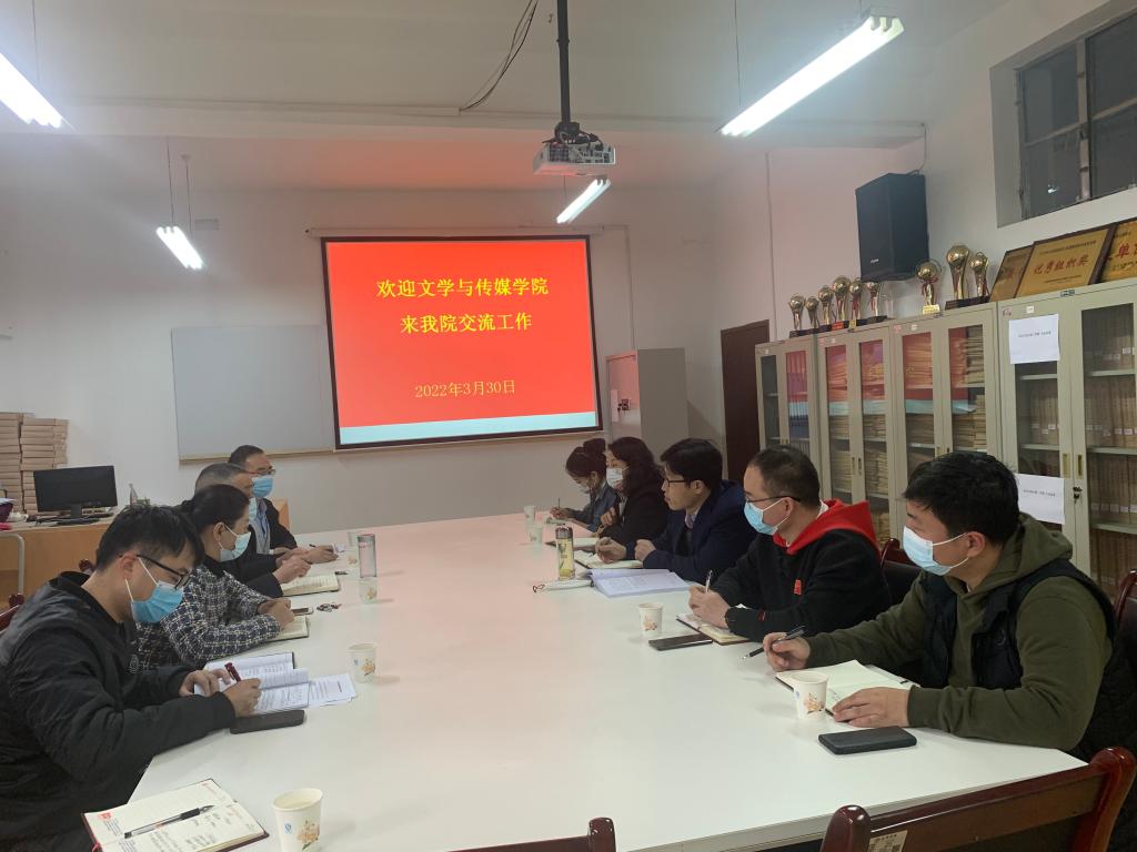 3月30日上午,文学与传媒学院党总支书记芦伟一行来我院交流座谈。文传学院党总支副书记杨海蓉、教工第二党支部书记谭诗民、支部委员刘锦和学生第二党支部书记、学工办副主任薛涛。365完美体育党总支书记肖红香,副院长、教工第二党支部书记刘子富,教工第一党支部书记陈玉平、学生党支部书记李梦及学工办副主任梁博文参加了座谈会。座谈由肖红香主持。