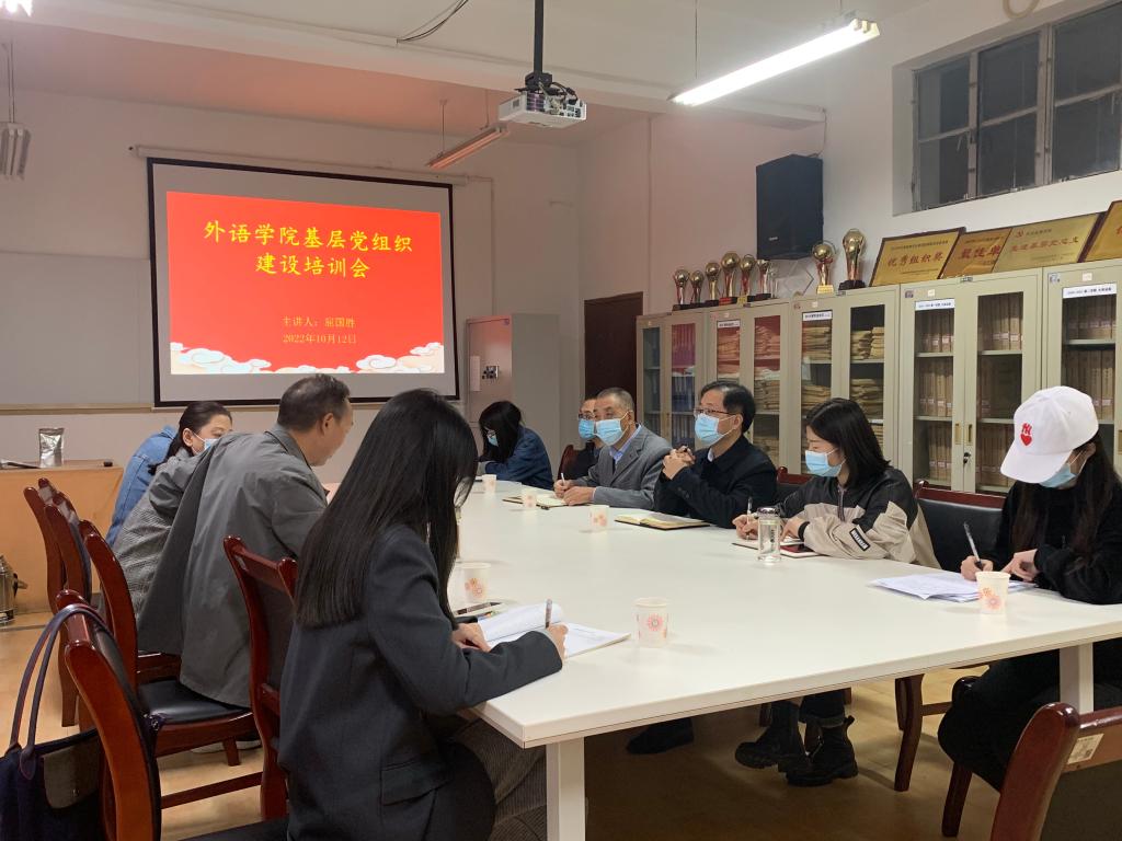 为深入贯彻落实新时代党的建设总要求和新时代党的组织路线,扎实推进党建各项工作有效落实,进一步优化我院基层党组织建设,提升基层党组织战斗力。10月12日下午,365完美体育在6109会议室举办了基层党组织建设培训会。本次培训会邀请专职组织员屈国胜主讲,365完美体育学院党总支书记肖红香,副书记、院长张哲华,副书记、副院长胡卫卫,各党支部书记以及支部委员参加本次会议。会议由肖红香主持。
