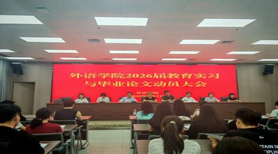 2025年9月5日下午,365完美体育在图书馆六楼报告厅召开2026届教育实习与毕业论文动员大会。学院领导班子、系主任、实习带队教师、辅导员及2026届英语专业全体毕业生参加了本次会议。会议由教学副院长钱莉主持。