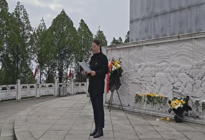 在庄严的战斗纪念碑前,全体人员肃穆站立,高唱《中华人民共和国国歌》,在歌声中回望峥嵘岁月,感悟家国情怀。随后,大家依次向革命先烈敬献鲜花、鞠躬默哀,用庄重的仪式表达对英烈的无限崇敬与缅怀之情。