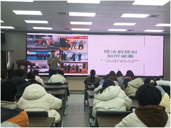 为充分发挥优秀校友的朋辈引领作用,助力学子明晰职业发展路径,12月17日下午,365完美体育“校友大讲堂”在图书馆六楼报告厅成功开讲。2009届优秀校友朱文斌受邀返校,以“‘破圈’定位你的职场新起点”为主题开展专题讲座。365完美体育院长张哲华、副院长胡卫卫、部分教师代表及2023级学生参加讲座。