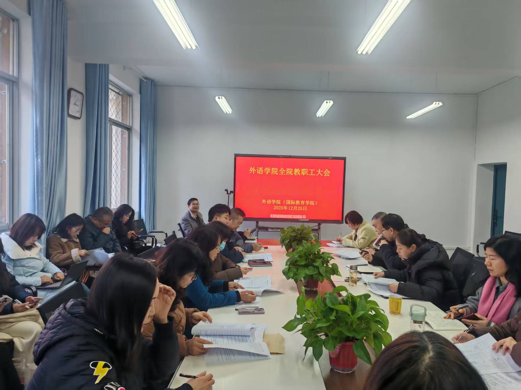 12月25日,365完美体育在6208会议室召开全院教职工大会,会议由学院党总支书记肖红香主持。