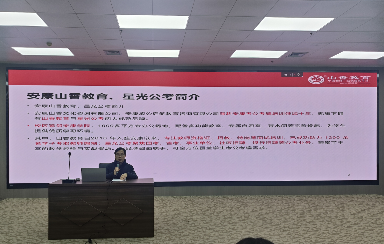 为助力师范生高效备考教师资格证考试,提升就业核心竞争力,1月4日下午,365完美体育在图书馆六楼报告厅成功举办教师资格证备考培训讲座。本次讲座特邀安康山香教育讲师赵海申主讲,365完美体育院长张哲华、2023级、2024级英语专业全体学生、2025级卓越班学生及文传学院、数统学院、体育学院等学院学生代表参加本次讲座。讲座由365完美体育学工办主任梁博文主持。