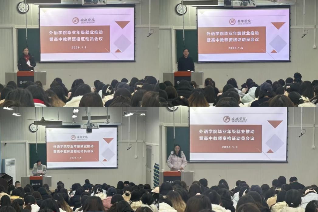 院长张哲华为学生们分析了当前就业形势,结合学生专业实际,提出两点核心要求:一是要树立时间观念,科学制定学习与实践计划,统筹推进论文撰写与教师资格证备考等关键事宜,避免拖延滞后。二是针对英语师范生专业特性,要牢牢把握大四在校宝贵时光,持续提升专业技能与教学实践能力,主动攻克教师资格证考试重难点,力争顺利取得证书,为未来投身教育行业增添核心竞争力。