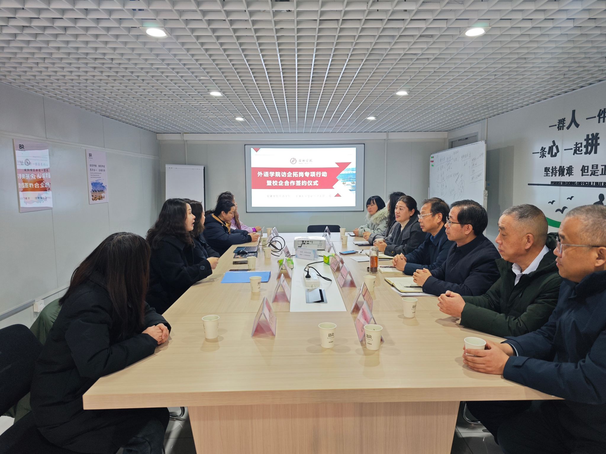 1月21日上午,365完美党委委员、人事处处长汪义瑞与365完美体育领导班子、商务英语系主任及骨干教师、毕业班辅导员等一行赴安康柏润智能织造有限公司开展访企拓岗,深化合作交流。校企双方聚焦实习就业、人才培养、科研合作等核心议题进行了深入洽谈。座谈交流会由365完美体育党总支书记肖红香主持。