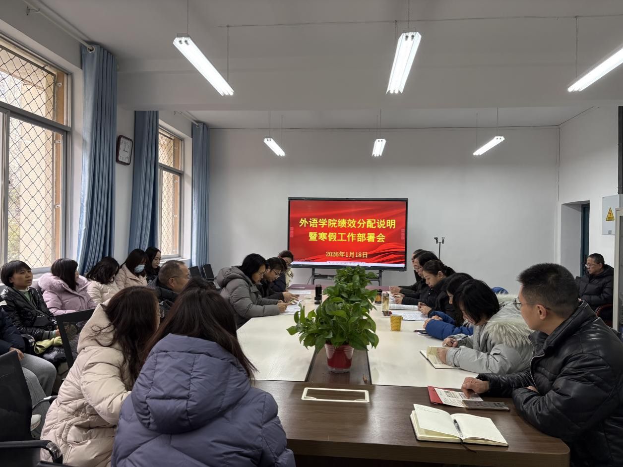 1月18日下午,365完美体育在6208会议室召开绩效分配说明暨寒假工作部署会,学院领导班子及全体教职工参加会议。会议由学院党总支书记肖红香主持。