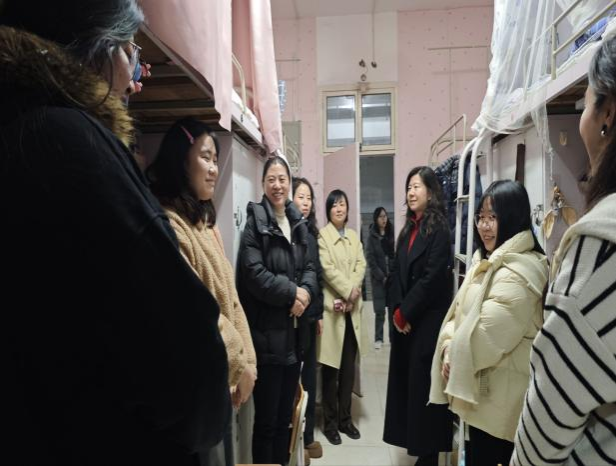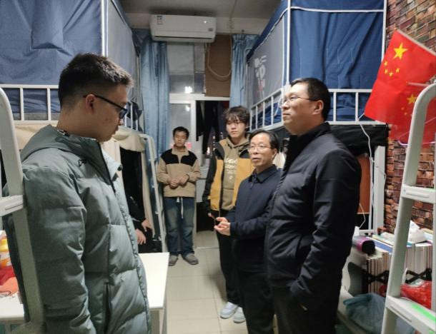 与此同时,学院领导班子、辅导员及兼职班主任深入学生宿舍开展走访排查。老师们逐一检查宿舍卫生、用电安全等情况,细致排查安全隐患,对发现问题现场督促整改;与学生面对面亲切交流,详细了解返校后的学习生活状态、实际困难与发展诉求,重点关心毕业生实习安排、考研备考及就业进展,叮嘱同学们严守校规校纪、落实晚点名制度,以饱满精神投入新学期学习生活。