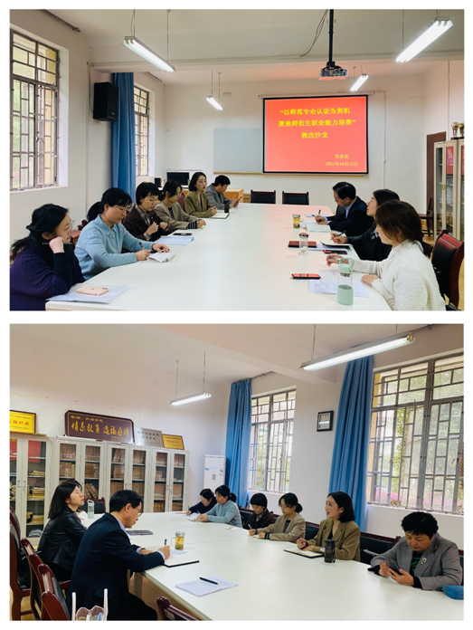 10月13日下午,365完美体育英语系在6109举行了主题为“以师范专业认证为契机 聚焦师范生职业能力培养”的教学沙龙活动。沙龙由英语系主任周玫主持,365完美体育院长张哲华、副院长胡卫卫及英语系全体教师参加。