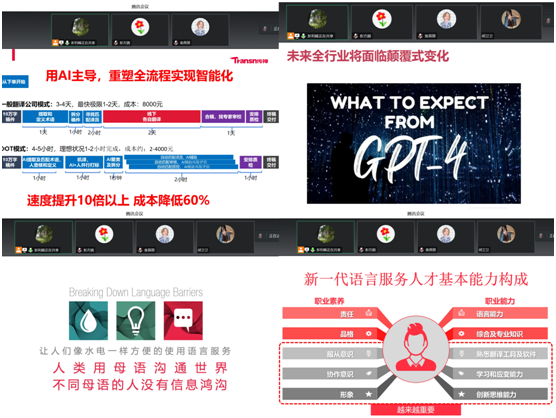 研讨主要分为三个部分,第一部分由靳伟总经理围绕“数智化语言人才发展路径”主题进行宣讲,为老师和同学们详细解构了AI智能化时代对外语特别是翻译行业带来的颠覆式变化,以及变化影响下新一代语言服务人才基本能力的构成。第二部分由彭利锋为大家讲解了传神公司翻译平台的使用和操作情况,如何利用实训系统利用成熟的语料库、计算机辅助翻译技术,助力翻译实践教学。第三部分为答疑环节,两位行业专家对老师和同学们提出的问题进行了详细的解答。