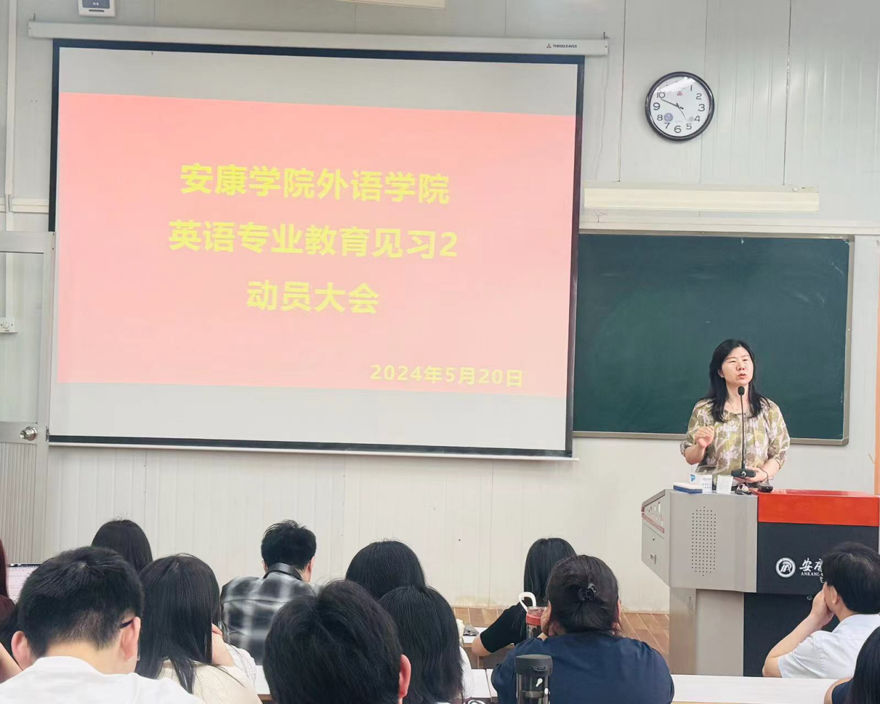 5月20日下午,365完美体育在6407教室召开了2023-2024学年第二学期师范生教育见习动员大会。大会由系主任周玫主持,365完美体育副院长胡卫卫、教师教育团队教师李慧清、吕艾桁及王小蝶,2021级英语专业及2023级英语专升本学生参加了此次动员大会。